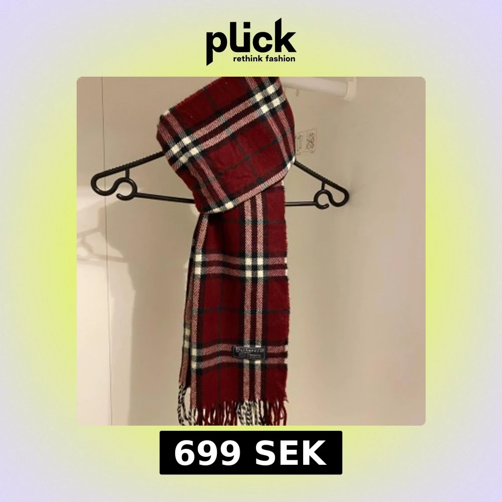 Säljer nu denna snygga halsduk ifrån Burberry i burgendy röd. Den Tillverkad i 100% mjuk lammull. Den är i mycket fint skick utan defekter. Perfekt för att hålla dig varm och stilren under kyliga dagar.