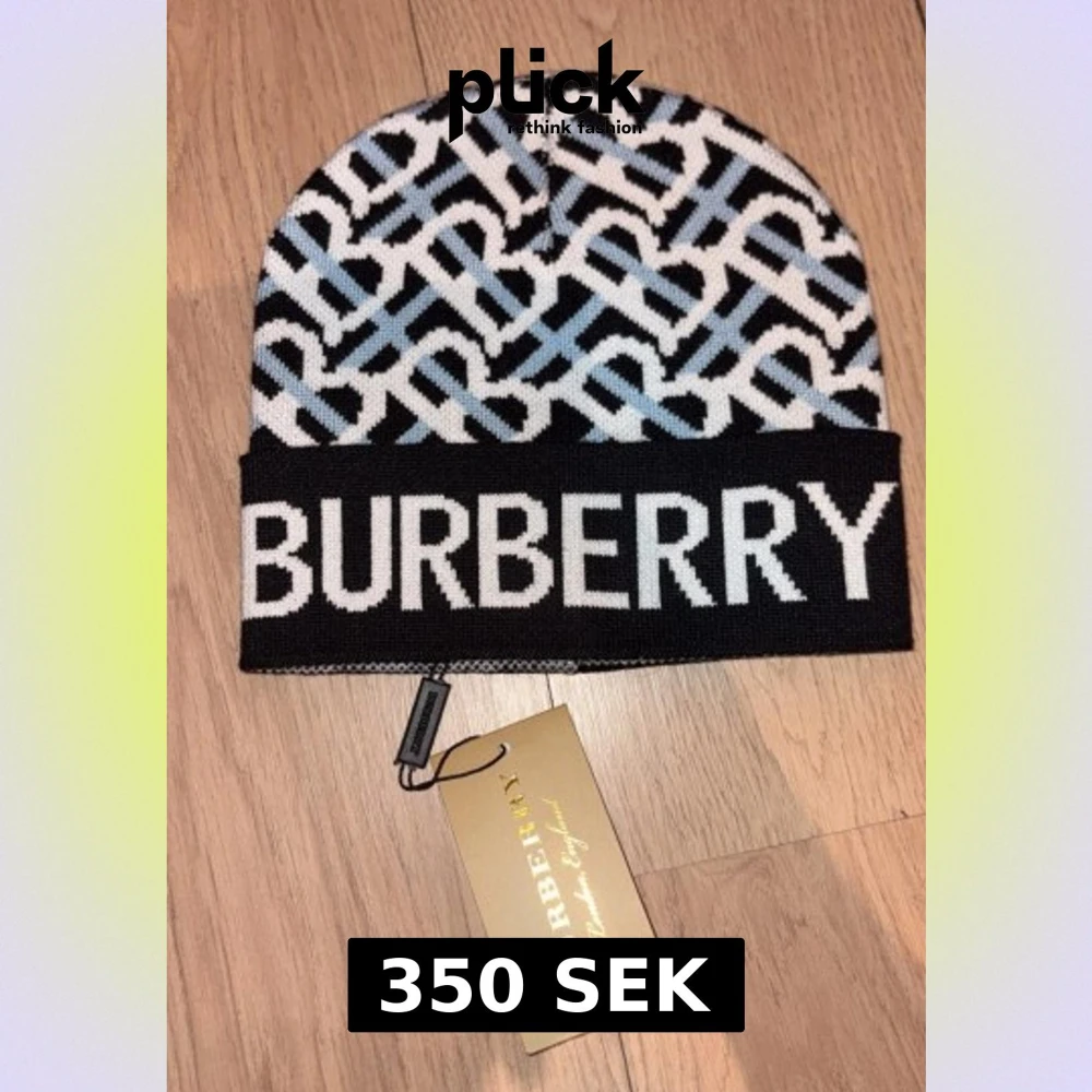 Snygg mössa från Burberry med grafiskt mönster i svart, vitt och ljusblått. Stor logotyp framtill och klassisk Burberry-tag på insidan. Stickad i mjukt material som håller dig varm och ger en cool vibe till din outfit.