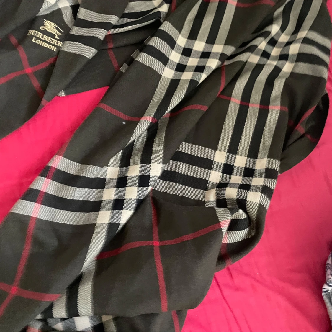 Snygg rutig halsduk från Burberry i klassiska färger. Den har ett stilrent mönster med inslag av rött, svart och beige. Perfekt för att ge en touch av elegans till din outfit.