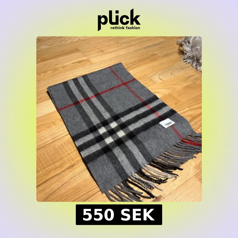 Snygg halsduk från Burberry i klassiskt rutigt mönster med grå bas och inslag av svart, vitt och rött. Mjuk och varm, tillverkad i ull med fransar i ändarna. Perfekt accessoar för att lyfta din vinterstil.