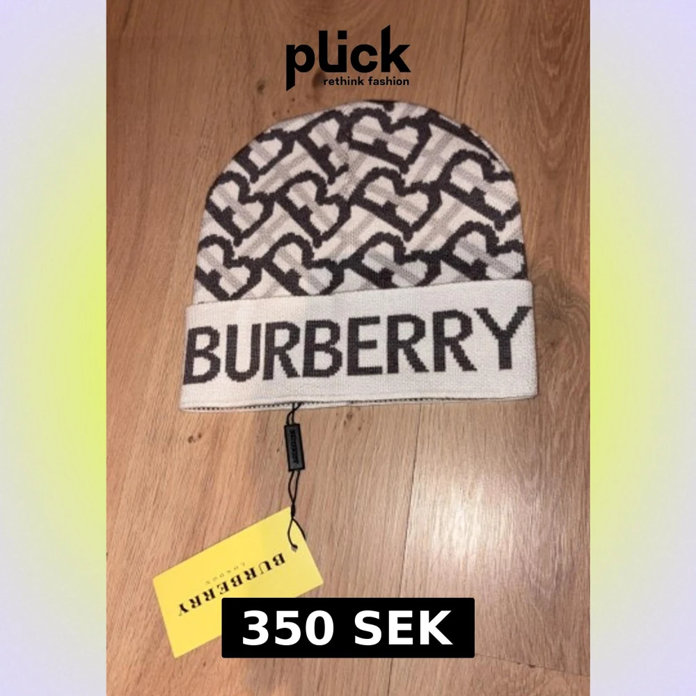 Snygg mössa från Burberry med grått och vitt mönster och stor logotyp framtill. Mössan har ett grafiskt mönster med B-bokstäver och är stickad i mjukt material. Perfekt för dig som vill ha en lyxig och trendig accessoar.