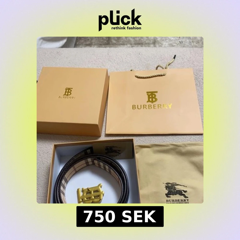 Snyggt Burberry-bälte i klassiskt rutigt mönster med inslag av beige, svart och rött. Bältet har ett exklusivt guldigt spänne med Burberrys logga och är gjort i skinn. Ena sidan har präglat svart rutmönster och den andra sidan har den ikoniska Burberry-rutan.