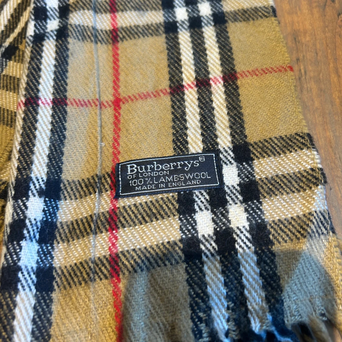 Klassisk rutig halsduk från Burberry i 100% lammull. Beige bas med svarta, vita och röda rutor, samt fransar i ändarna. Perfekt accessoar för att lyfta din outfit med en tidlös brittisk stil.