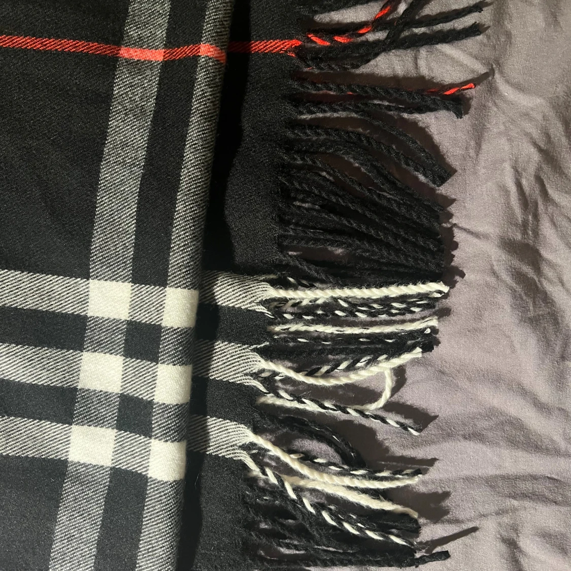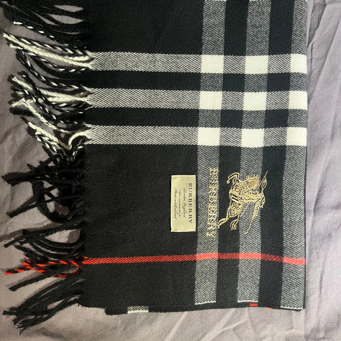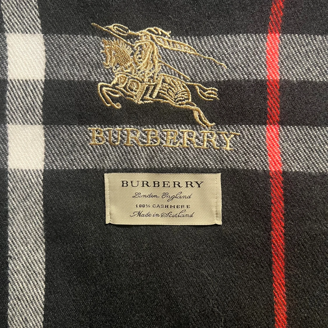 Snygg halsduk från Burberry i klassiskt rutigt mönster med svarta, vita och röda detaljer. Halsduken är tillverkad i 100% kashmir och har broderad Burberry-logga samt fransar i ändarna. Perfekt accessoar för att lyfta din outfit.