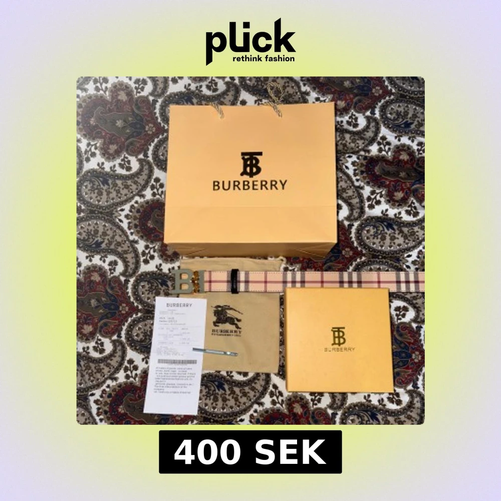 Säljer ett snyggt Burberry bälte med klassiskt randigt mönster i beige, rött och svart. Bältet har ett stilrent guldspänne med Burberrys B-logga. Perfekt accessoar för att lyfta din outfit med lyxig känsla och ikonisk design.