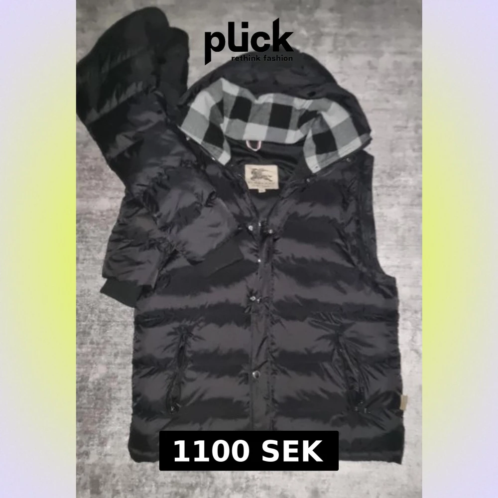 Säljer en svart dunväst från Burberry i storlek XXL. Västen har en quiltad look, avtagbara armar, luva med grått och svart rutigt foder, samt snygga metallknappar med Burberry-gravyr. Två dragkedjefickor framtill och klassisk Burberry-label på insidan. Aldrig använt.