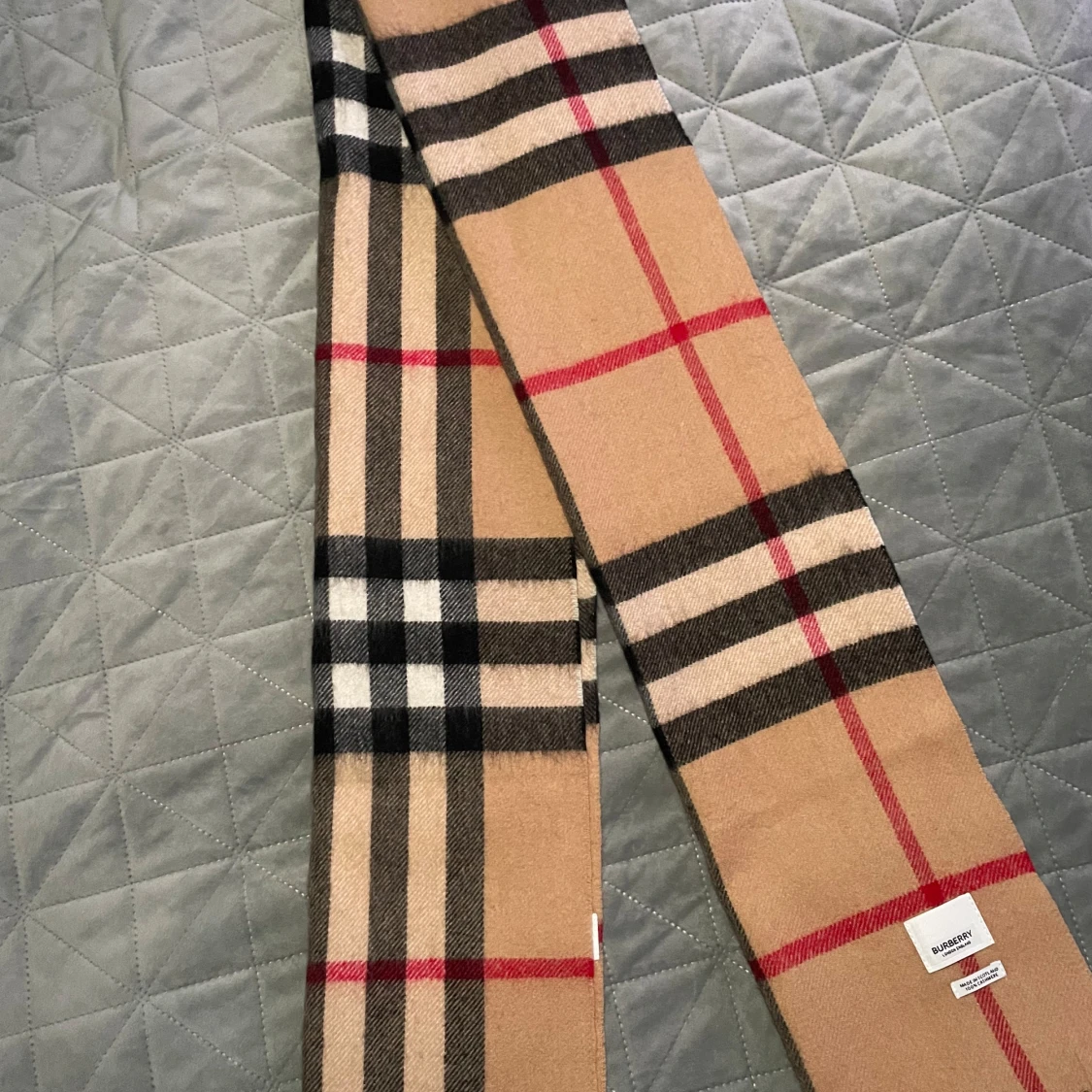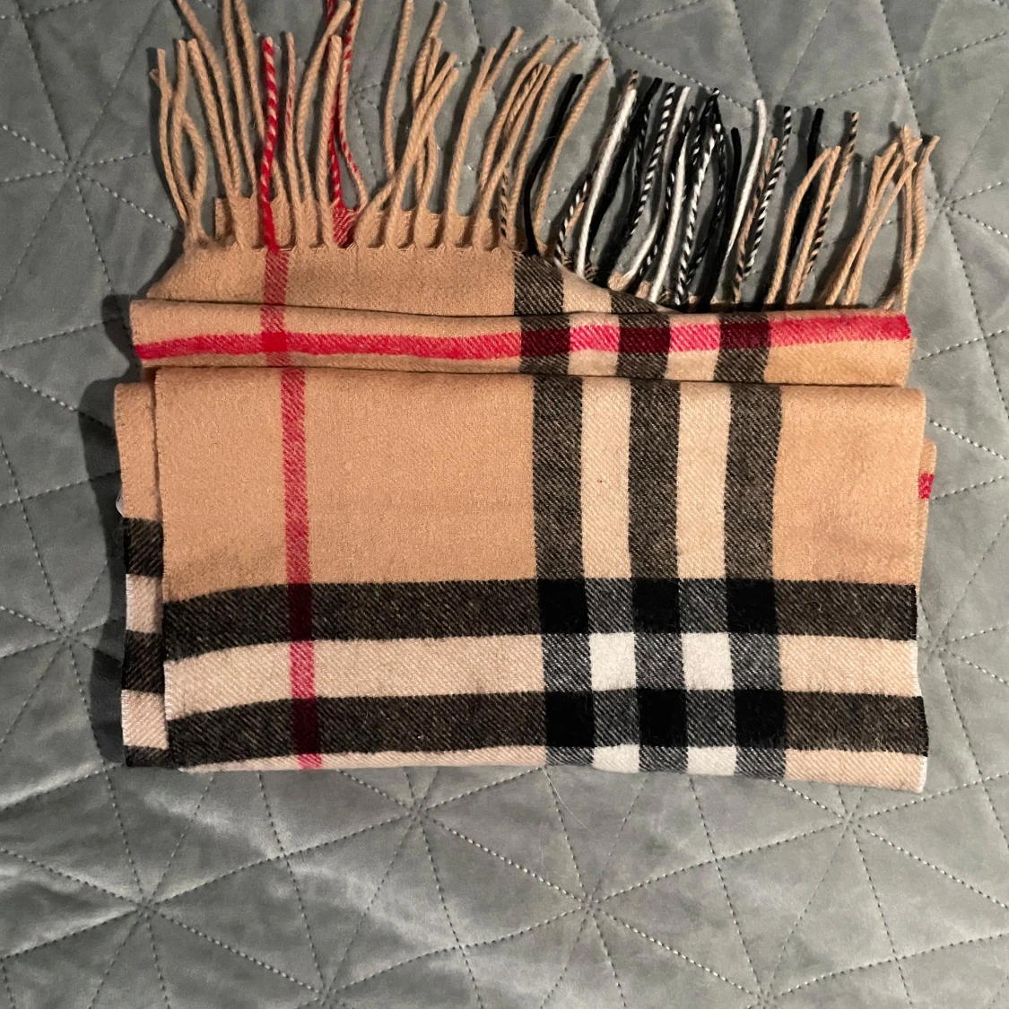 Snygg beige halsduk från Burberry med klassiskt rutmönster i svart, röd och vit. Tillverkad i mjuk kashmir och har fransar i ändarna. Perfekt för att hålla dig varm och stilren under kyliga dagar. Priset går möjligtvis att diskuteras! Inköpt i bulk av leverantör. ⚠️OBS! Bundle pris finns nu tillgängligt för båda två halsdukarna. pris ligger på 1400kr!⚠️. Skriv gärna vid minsta fundering/R.EsellingSWE😎
