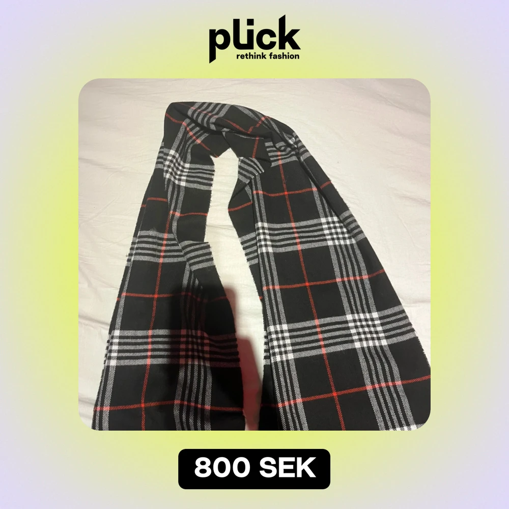 Säljer en snygg svart halsduk med klassiskt rutigt mönster i vitt och rött. Perfekt för att hålla sig varm under kyliga dagar. Den är stilren och passar till de flesta outfits. Ett måste för höst- och vintergarderoben! Kop