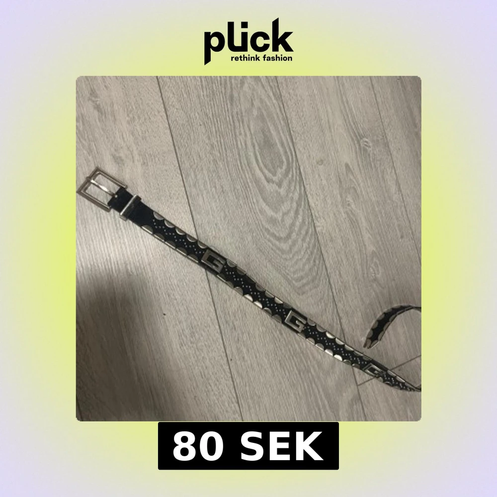 Snyggt svart bälte med unika silverdetaljer och med silvriga ”G” plattor. CPerfekt för att ge en edgy touch till din outfit. Bältet har en rad med små silverkulor och halvcirkelformade detaljer längs hela längden. 92cm lång!