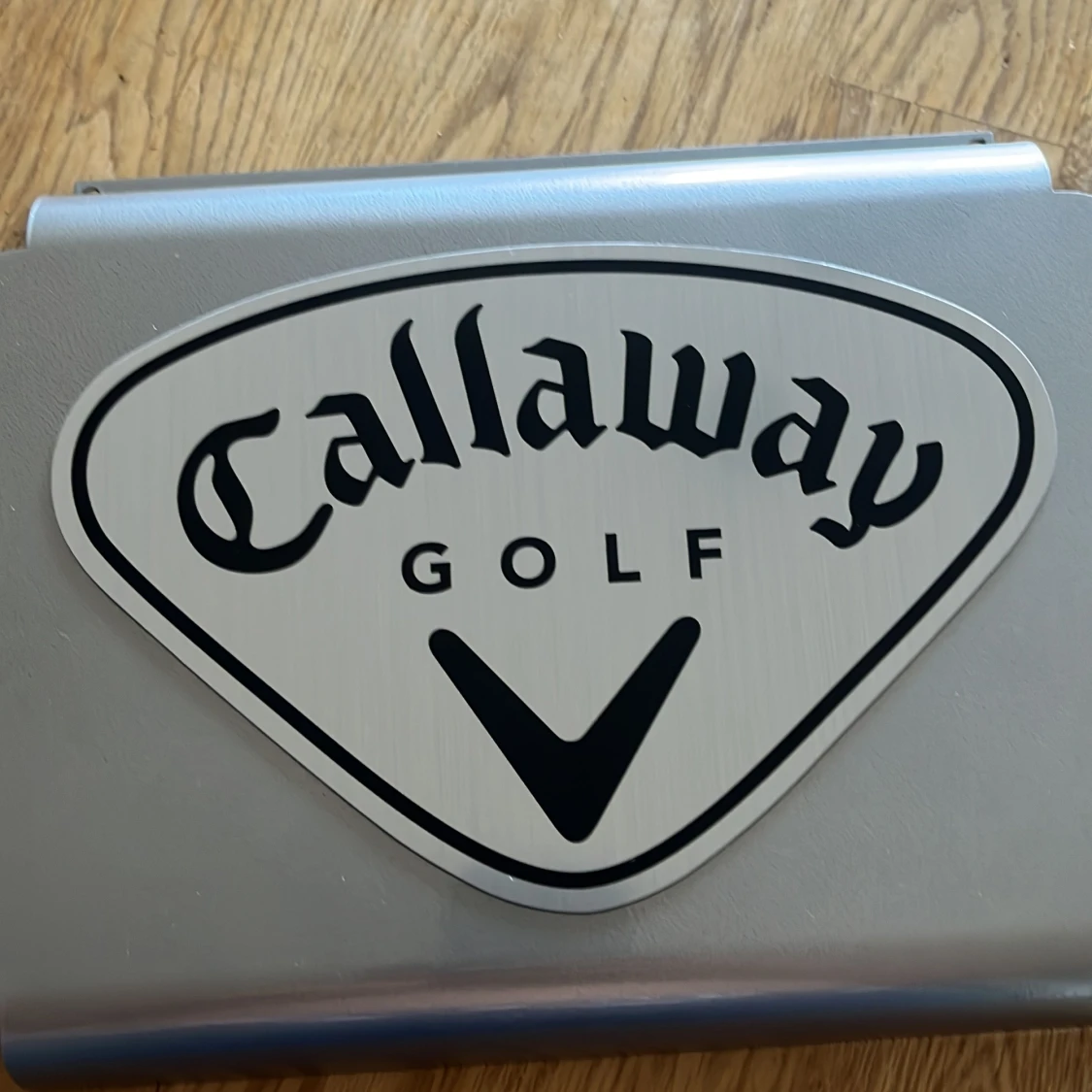 Snygg Callaway Golf-skylt i metall, perfekt för golfentusiasten. Skylten är i gott skick med tydlig logotyp och inga större repor eller skador. Passar utmärkt som dekoration i garage, golfklubb eller hemmakontor.