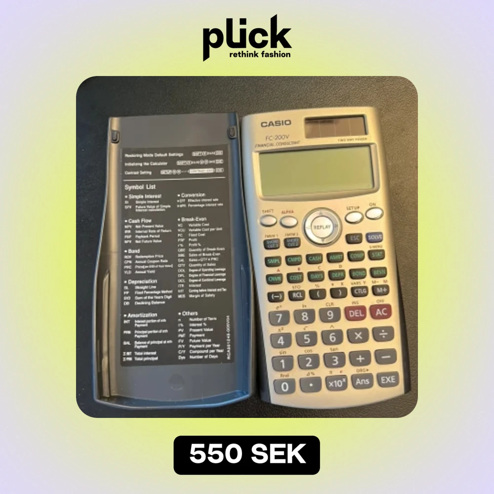 Casio räknare som används för statistik, finans, försäljnings kurser … etc. Använt bara ett par gånger inför en tenta dvs. batteriet är förtfärande nästan full 👌🏼