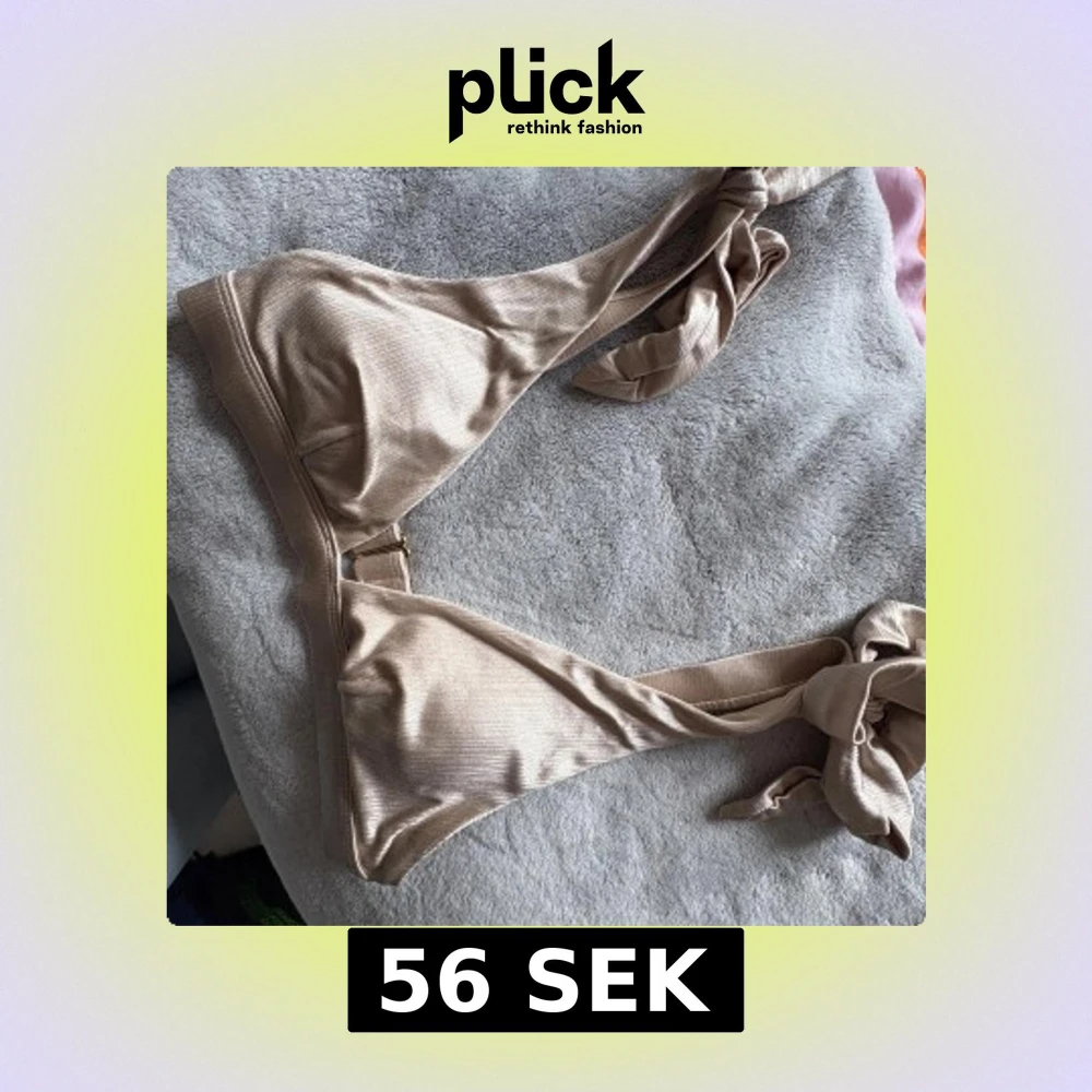 Superfin champagne färgad bikinitopp från HM. Endast använd en gång. Inlägg finns i. Rosetterna på banden går att knyta och och knyta hur man vill. Alla lappar är bortklippta men skulle säga XS.
