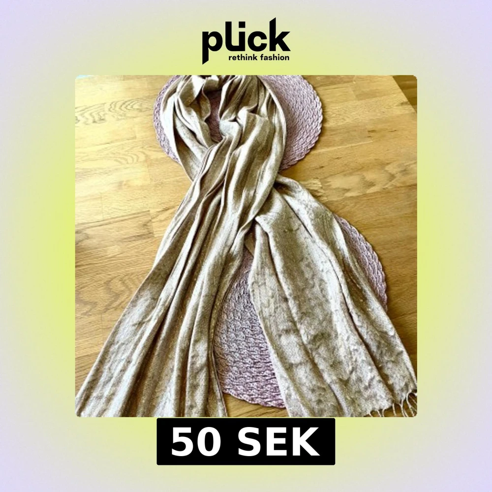 Snygg och mjuk halsduk i champagnefärgat tyg med glittriga detaljer. Lång och lätt att styla på olika sätt, perfekt för att lyfta din outfit med lite extra shine. Materialet känns lent och följsamt mot huden.