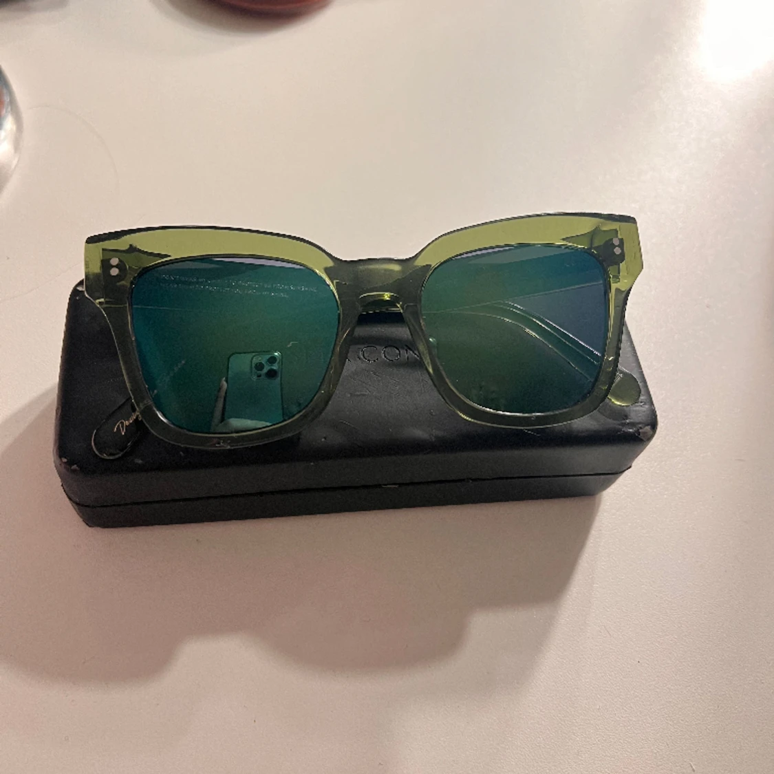 Säljer dessa kiwi färgade chimi glasögon i modell 005! 🌴 finns ej att köpa längre. Säljer då jag köpt andra. Bra skick förutom att bågarna är lite lösa! Små små tecken på användning skriv för fler bilder!