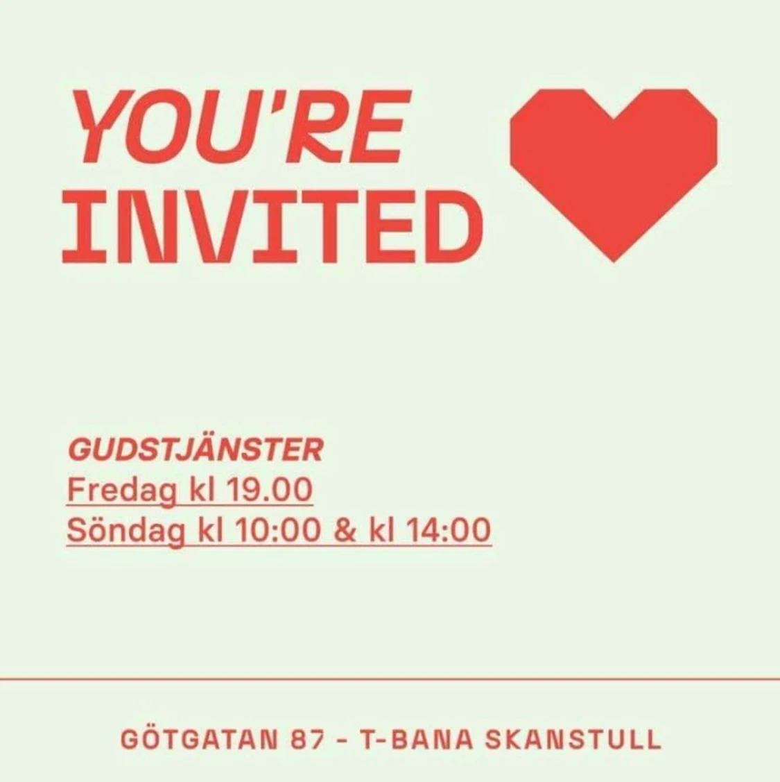 Youre invited ❤️ We Are Onechurch har gudstjänster 19.00 på fredagar och 10.00 & 14.00 på söndagari Skanstull. Det går inte att missa det stora korset som lyser upp hela götgatan❤️ Du kan skriva om du vill följa med❤️🙏🏾