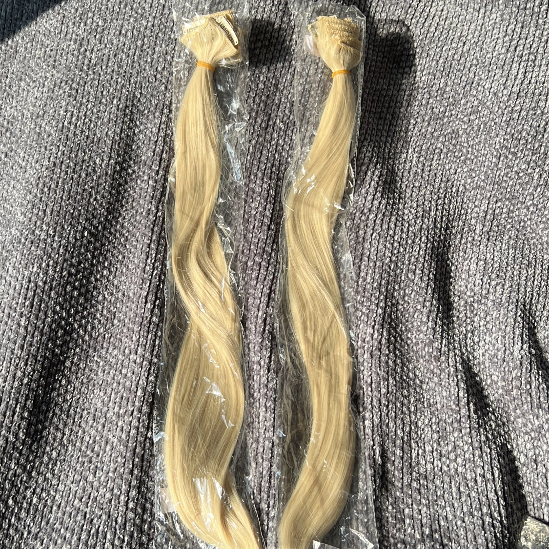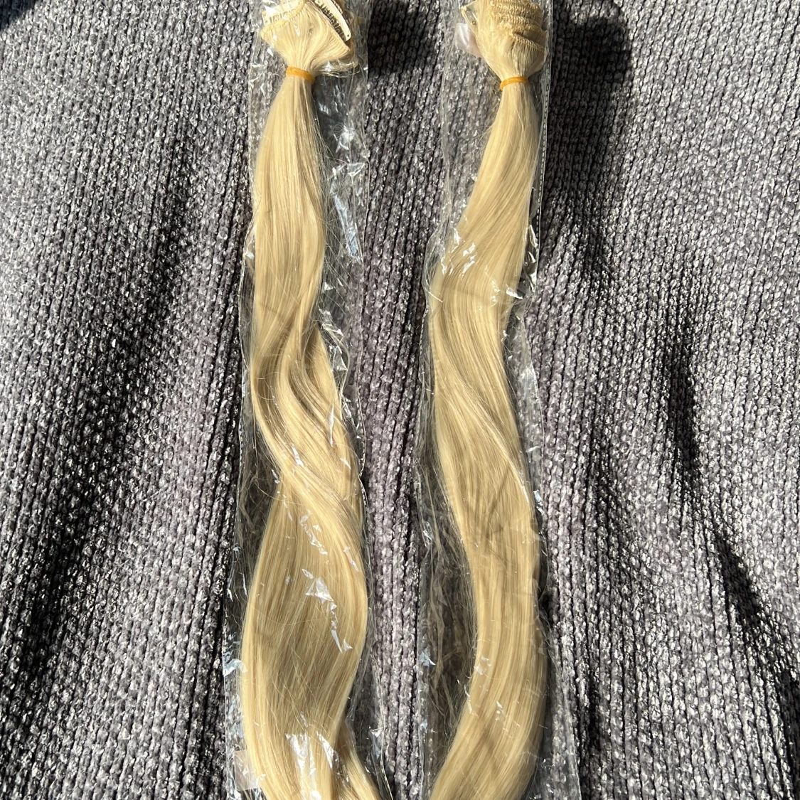 Långt löshår med clips! Väldigt ljus blont! Blev tyvärr för ljust för mitt hår så kan ej använda de! Väldigt bra kvalitet!
