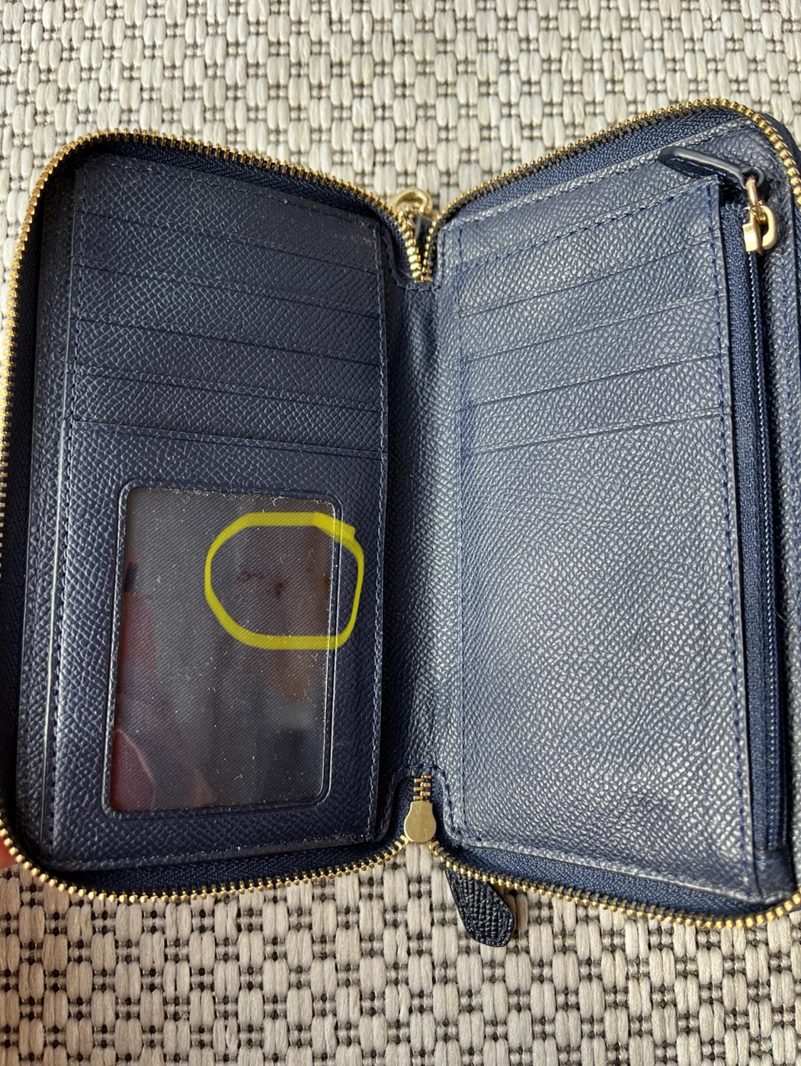 Märkesplånbok i fint skick förutom en fläck på plasten (inringad i gult på bild).