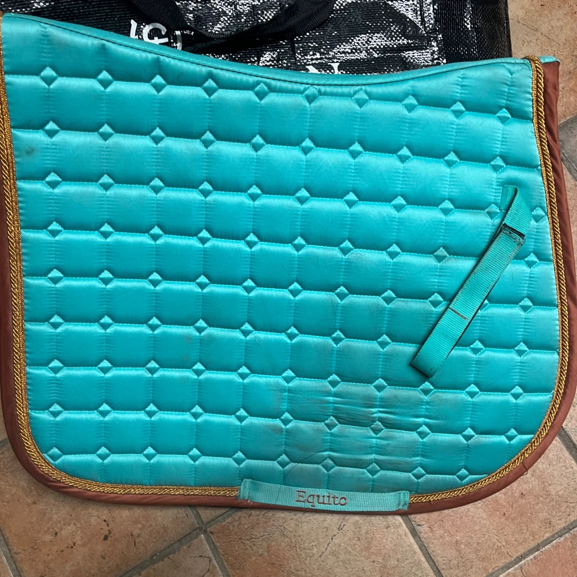 Snyggt turkost Equito shacbrak. Storlek cob. Använt ett få tal gånger och det ska tvättas innan det köps.
