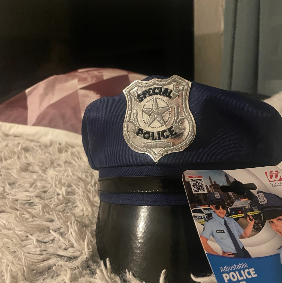 polis hatt med lappen kvar, endast använd en gång! justerbar där bak så den passar alla huvudstorlekar 💓