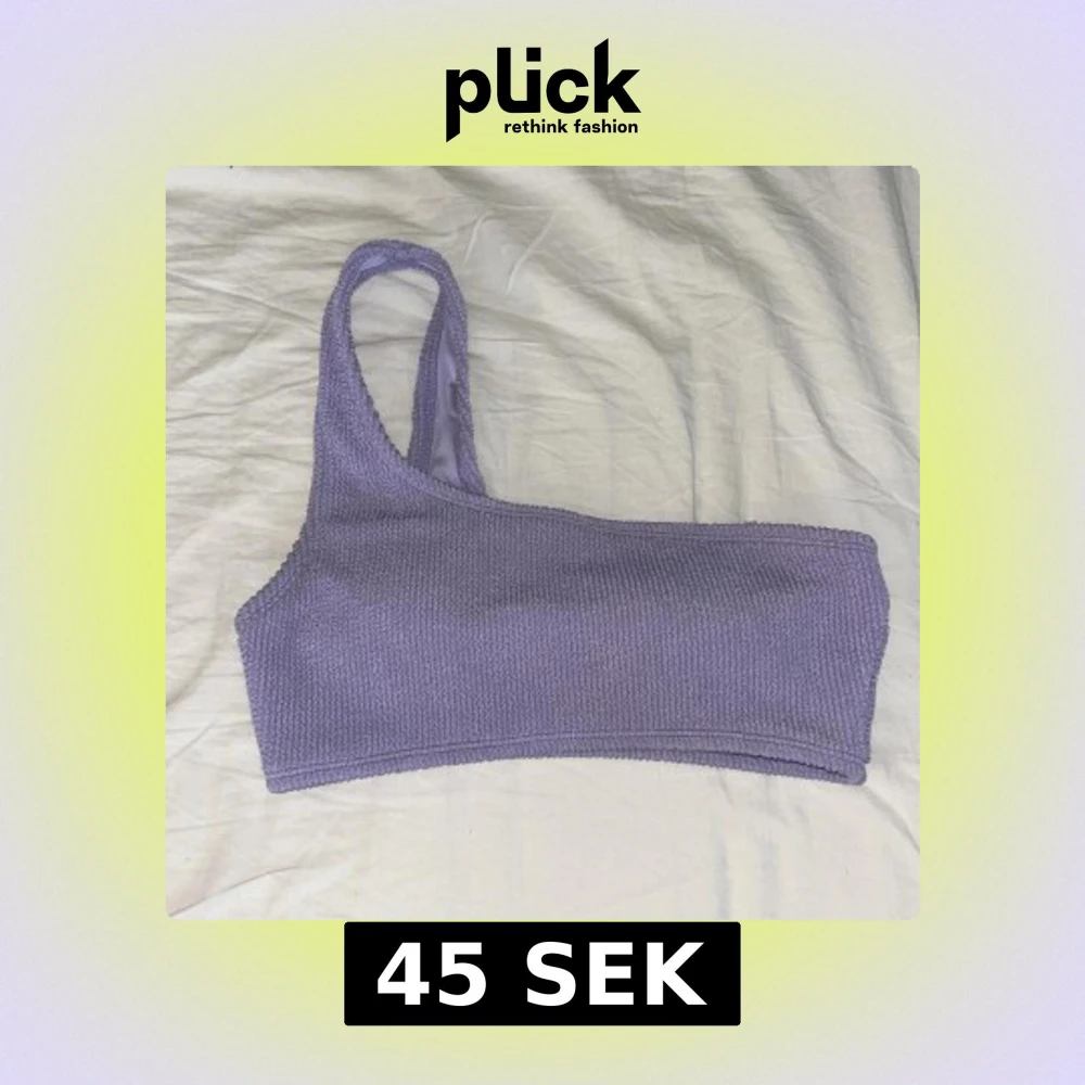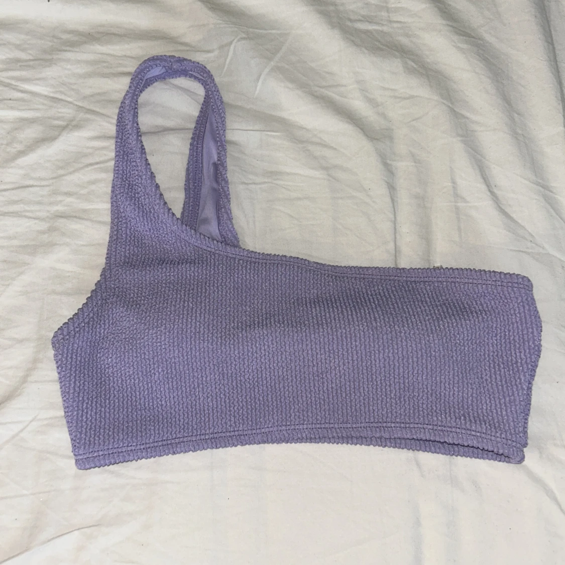 Snygg lila bikiniöverdel med ett axelband och ribbad textur. Den har använts ett fåtal gånger med är i bra skick.