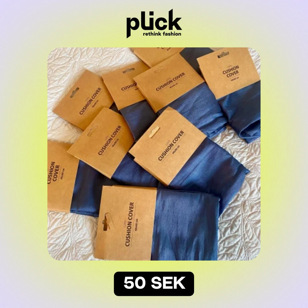 Jag har 10st blåa kuddfodral(9 på bilden då den 10e är ”öppnad” men endast provad på kudde). Färgen är skimrig marinblå. Storlek 40x40cm. Säljer alla för 350 eller 50/styck.