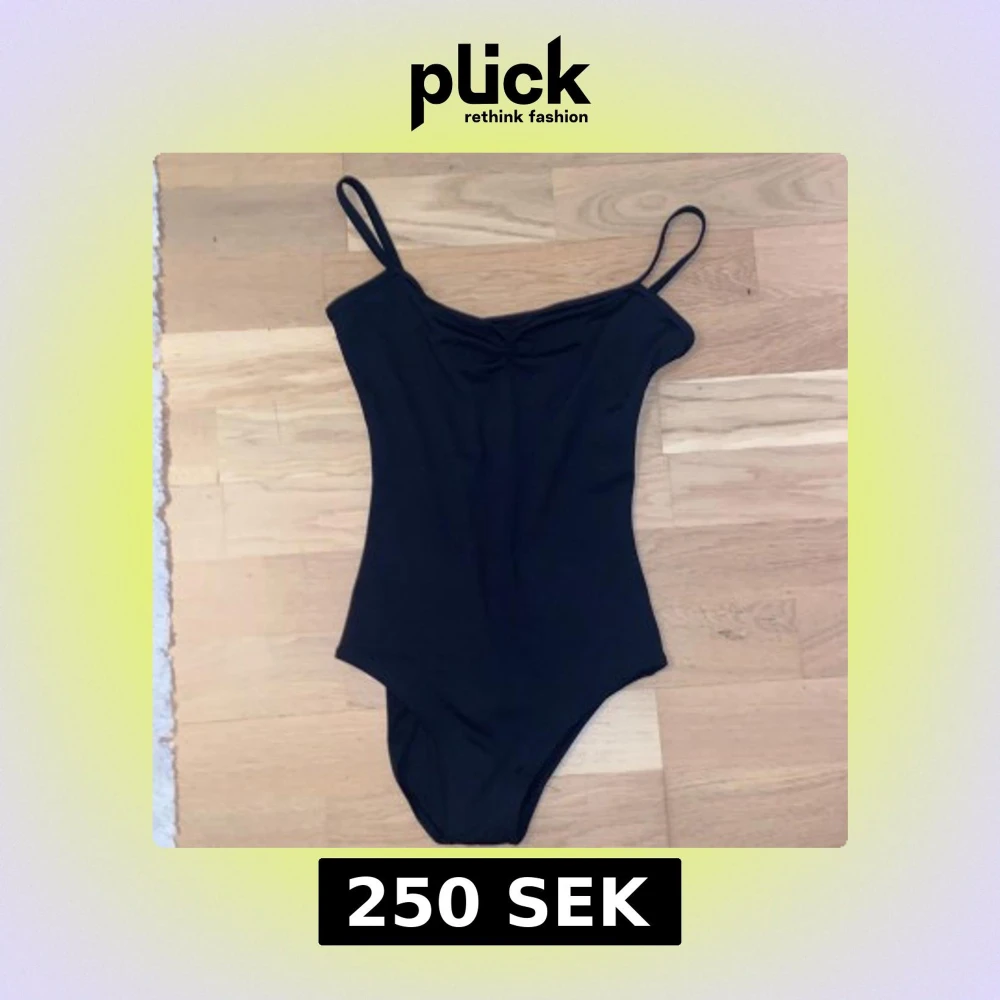 Enkel och stilren svart leotard/balett dräkt med smala axelband och lätt rynkdetalj framtill vid bysten. Klassisk modell med något högre skärning vid benen och mjukt, stretchigt material som sitter bekvämt.