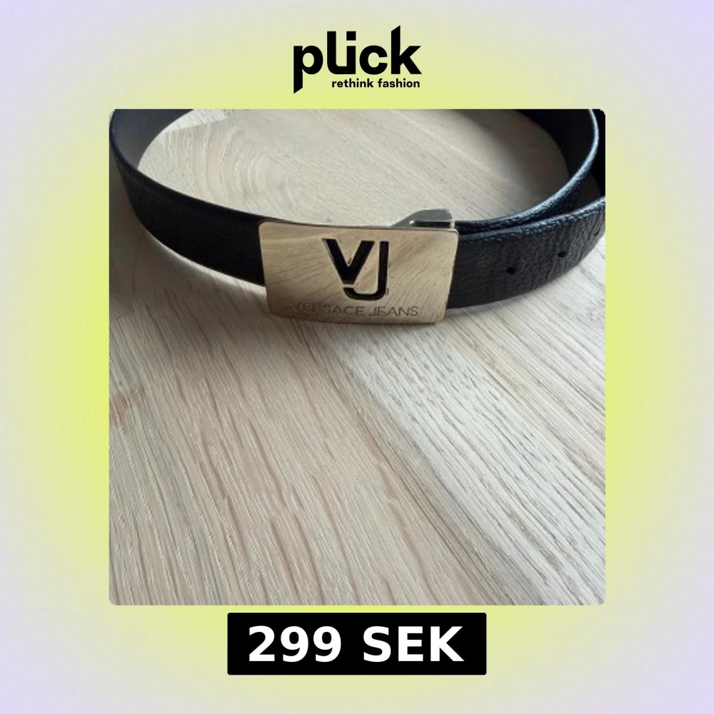 Snyggt svart bälte från Versace Jeans med bred design och exklusivt guldigt spänne med VJ-logga. Tillverkat i äkta skinn och har en stilren look som lyfter din outfit. Bältet är tillverkat i Italien och har märkets signaturdetaljer. Bältet är äkta och använts 3 gånger.