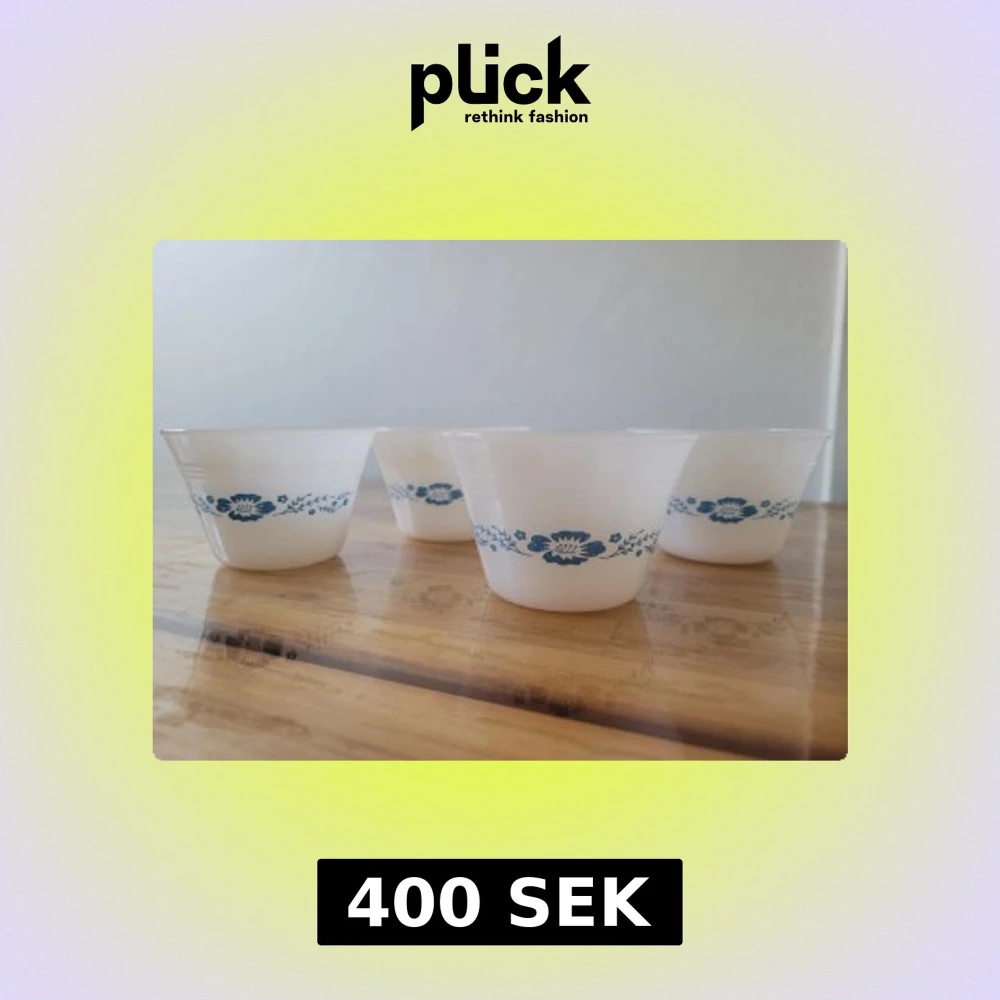##vintage##mexicovintage##dessertskålar##termocrisa ##I mycket bra skick som nya. ##mexikanska ##1960-talet #4 stycken Dessertskålar vintage, mjölkporslin, Termocrisa.🤍🩵💙