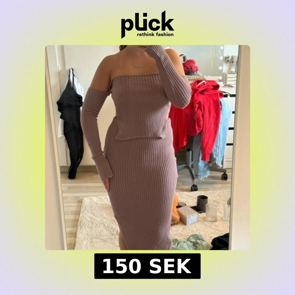 Tvådelat set - Offshoulder med långa ärmar, figurnära passform och snygg slits på sidan. HELT oanvänt med prislapp kvar.