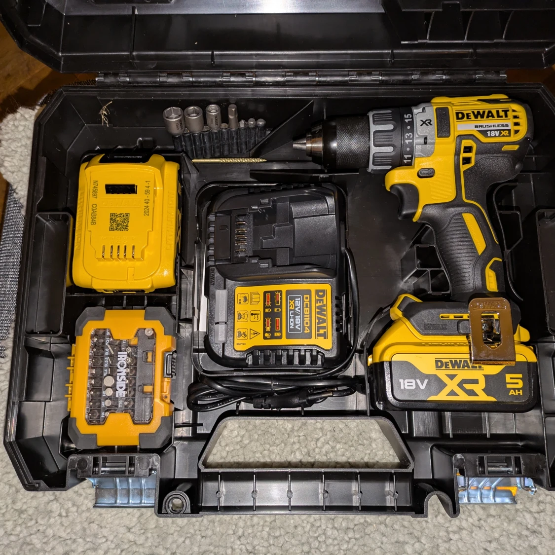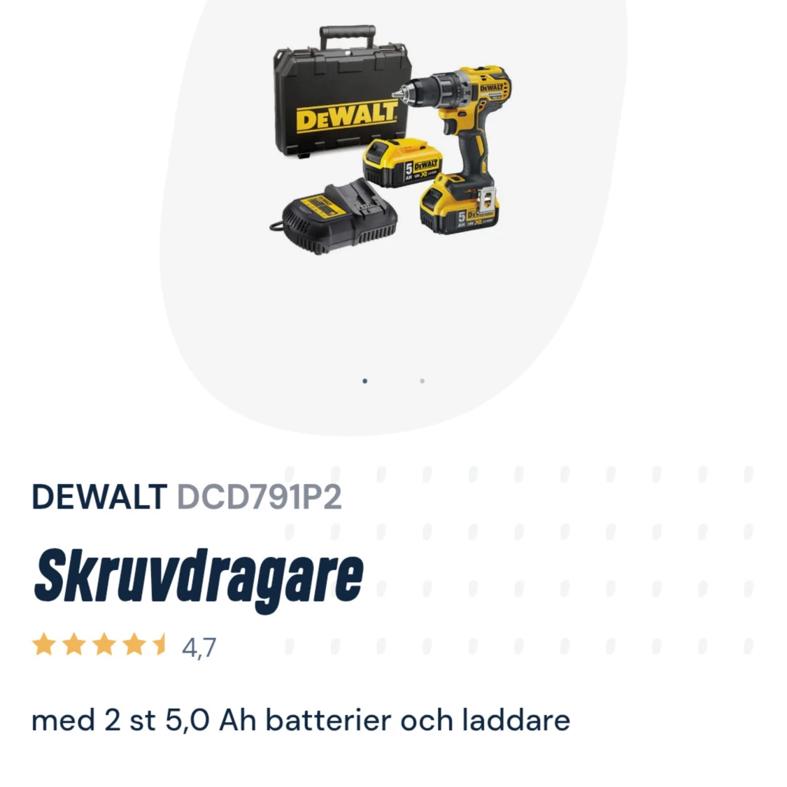 Säljer en DeWalt DCD791P2 skruvdragare med två 5,0 Ah batterier och laddare. Kommer i en robust förvaringslåda. Perfekt för både proffs och hemmafixare som behöver en pålitlig och kraftfull skruvdragare.