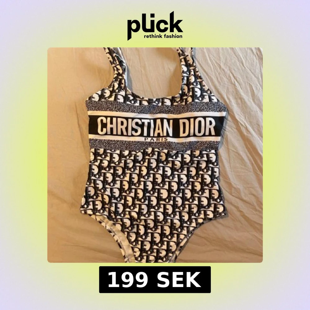 Säljer en snygg svartvit baddräkt från Christian Dior med tydlig logotyp framtill och klassiskt Dior-mönster över hela plagget. Baddräkten har breda axelband och rundad halsringning. Perfekt för sommaren!