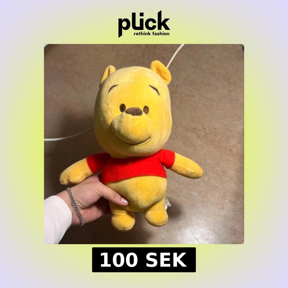 Mysig Winnie the Pooh-gosedjur från Disney med röd tröja. Tryck på handen för ljudfunktion ("Press Me"). Bra skick, inga synliga fläckar eller skador. Perfekt för barn eller samlare av Disney-produkter. Priset kan diskuteras!!!