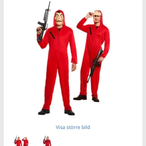Säljer denna dräkt från partykungen pga för liten i storleken. Nu till halloween är den perfekt att ha som utklädnad ifall du vill vara din favoritrånare. Dräkten är aldrig använd. Masken inkluderas inte, inte heller några vapen. Frakt står köparen för.