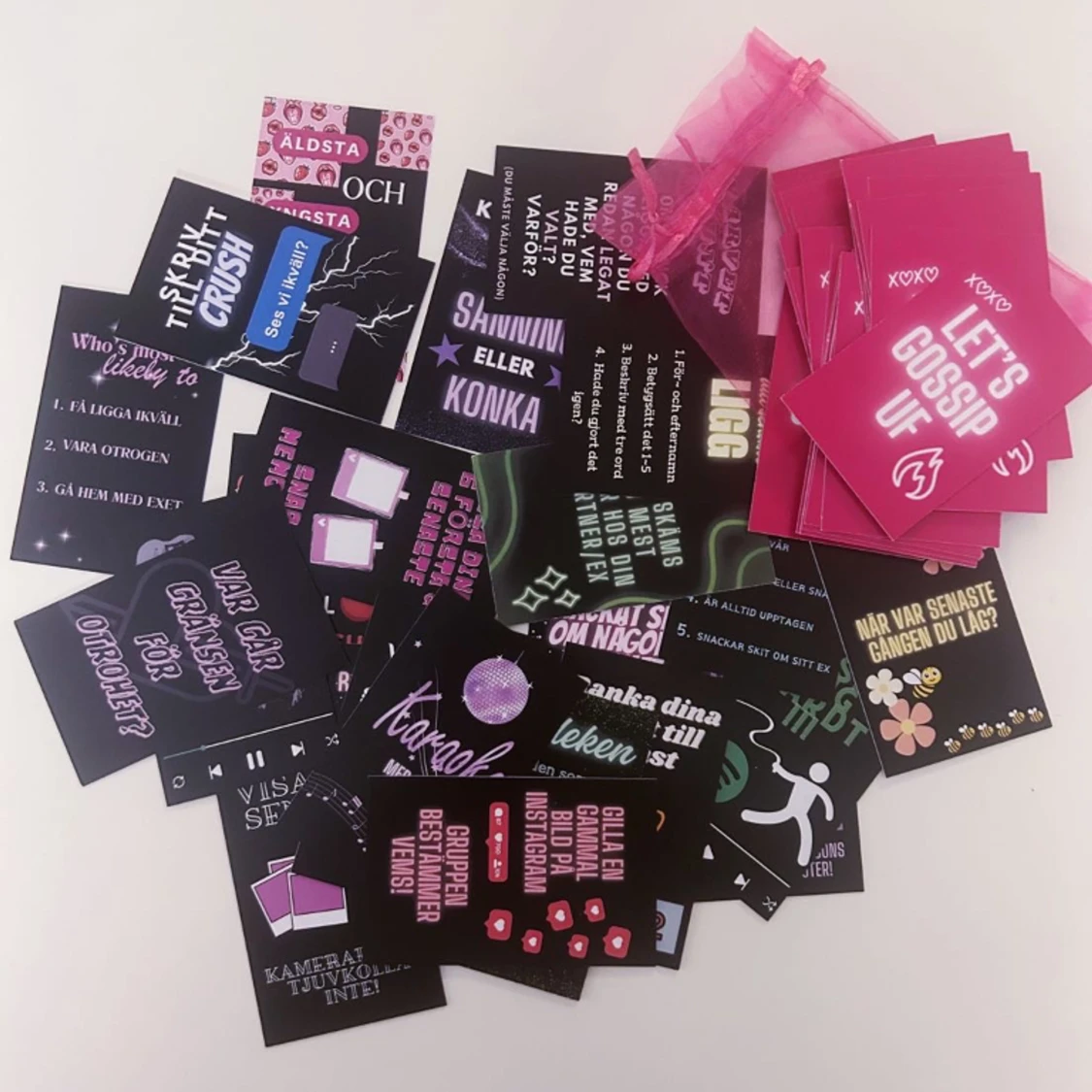 Superkul kortlek till festen🤩 55 st kort fyllda med frågor, utmaningar och påståenden!🙌 Vi fraktar över hela Sverige och kan mötas upp i Varberg. Fraktkostnaden blir 46 kr. Vi kommer även ställa ut på UF-mässan i Halmstad Arena 14 mars!💕