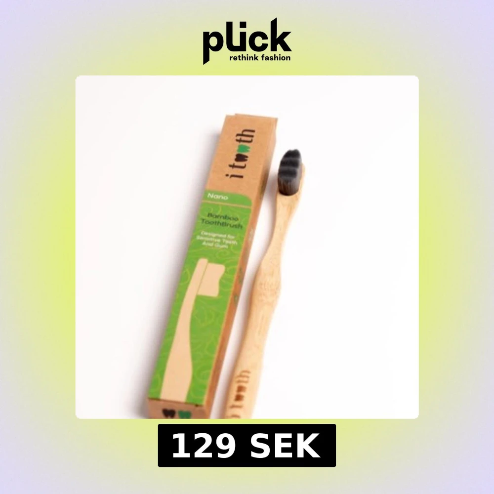Miljövänlig tandborste i bambu med mjuka, svarta borst. Designad för känsliga tänder och tandkött. Ergonomiskt handtag och stilren design. Produkten är oanvänd ut och levereras i originalförpackning.