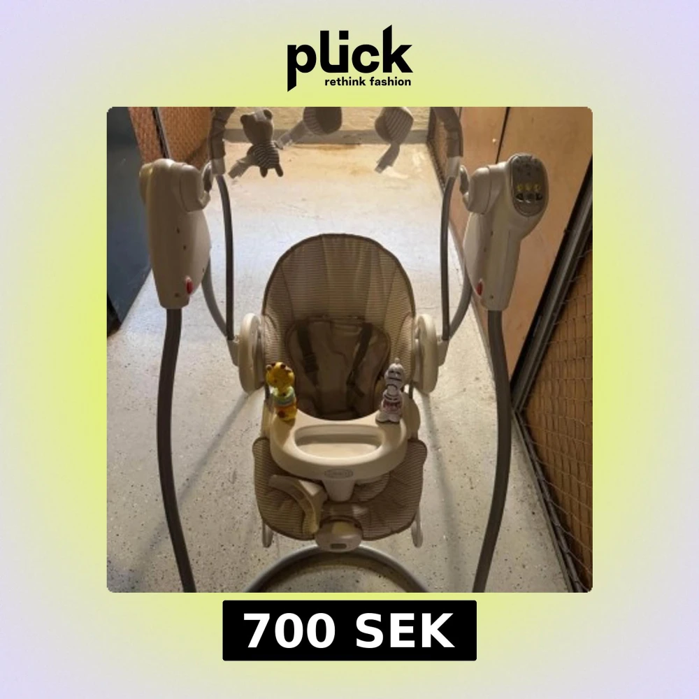 Säljer en elektrisk babysitter från Graco i beige och bruna nyanser. Den har en stabil ram och en bekväm sits med säkerhetssele. Babysittern är utrustad med en kontrollpanel för att justera gungfunktioner och har hängande leksaker för underhållning. Perfekt för att lugna och roa ditt barn.