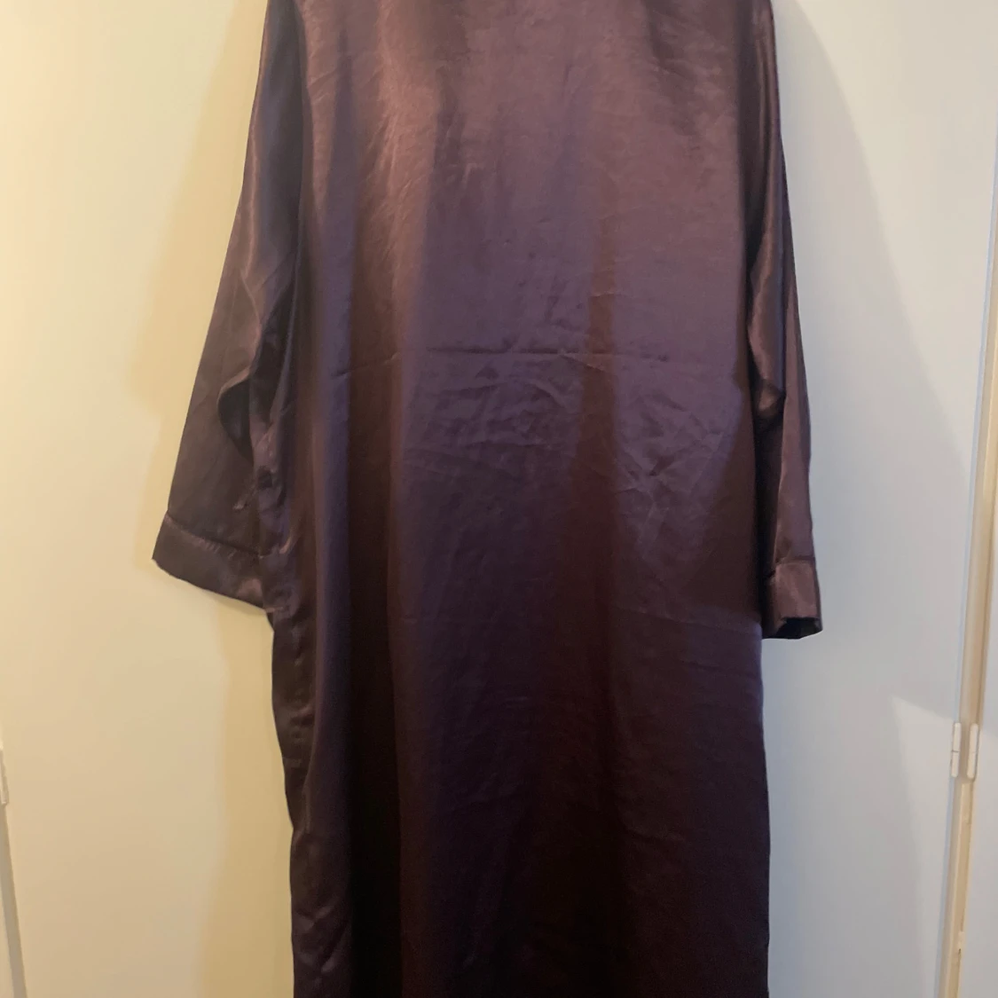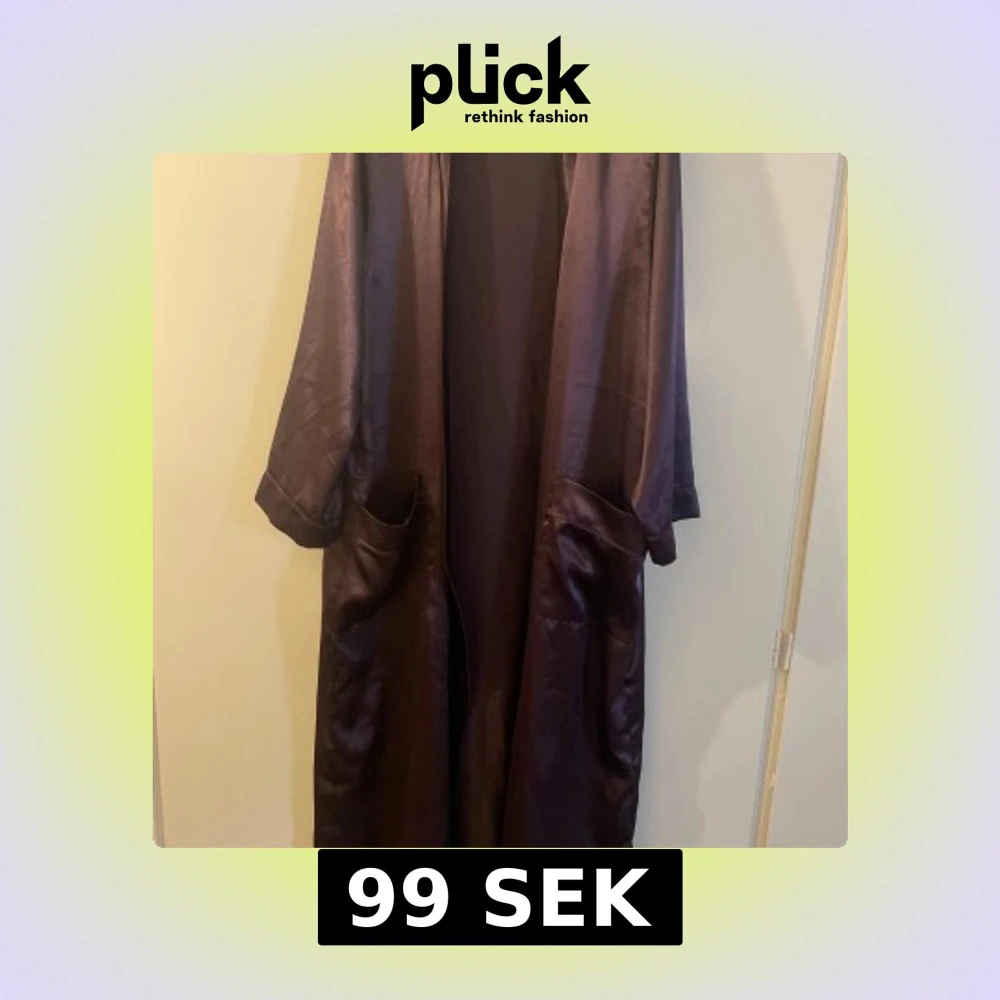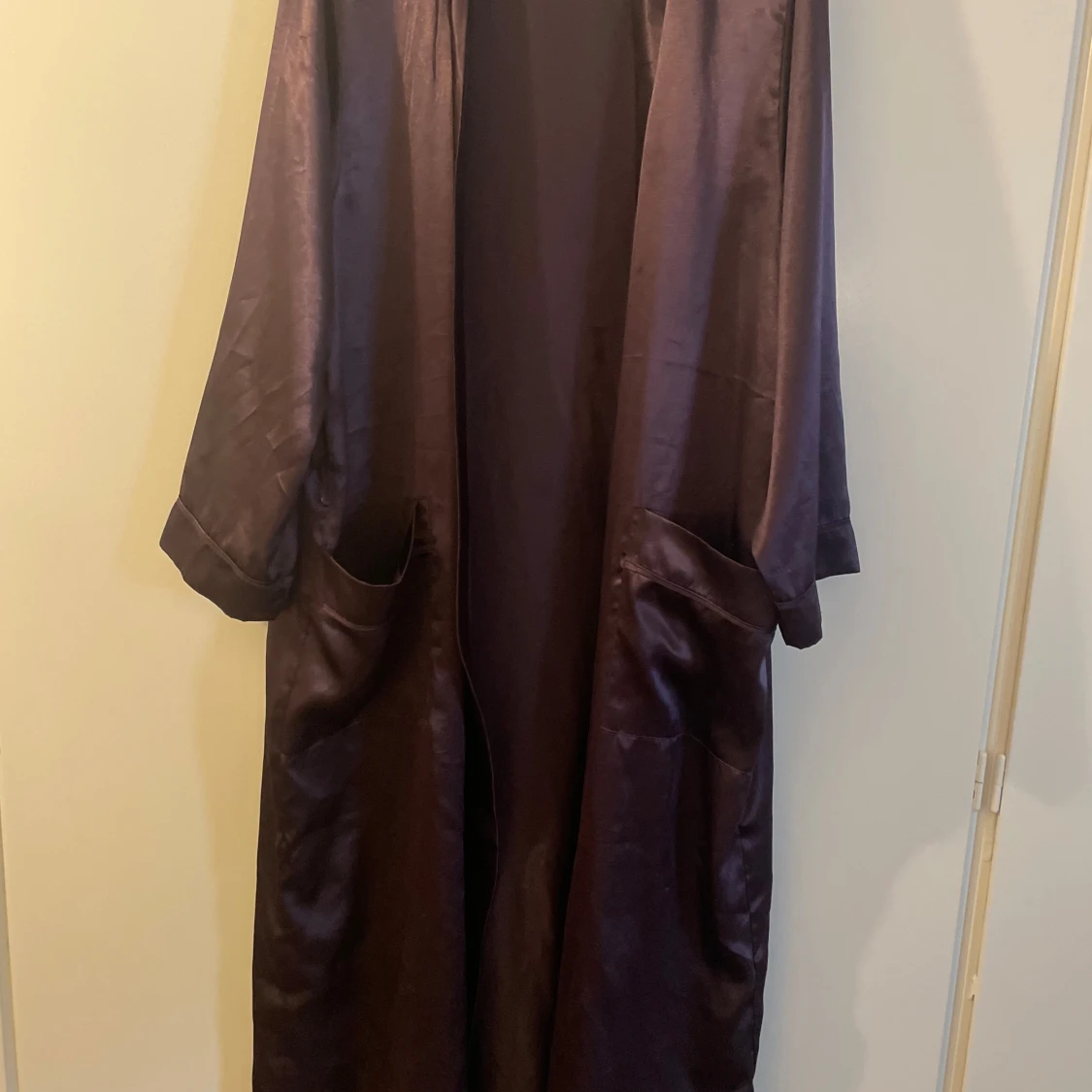 Snygg morgonrock i mörklila från Ella May för Lindex. Morgonrock har en loose passform, vida ärmar och stora fickor framtill. Tillverkad i glansigt satinliknande material som ger en lyxig känsla. Perfekt för dig som gillar stilrena och bekväma plagg.
