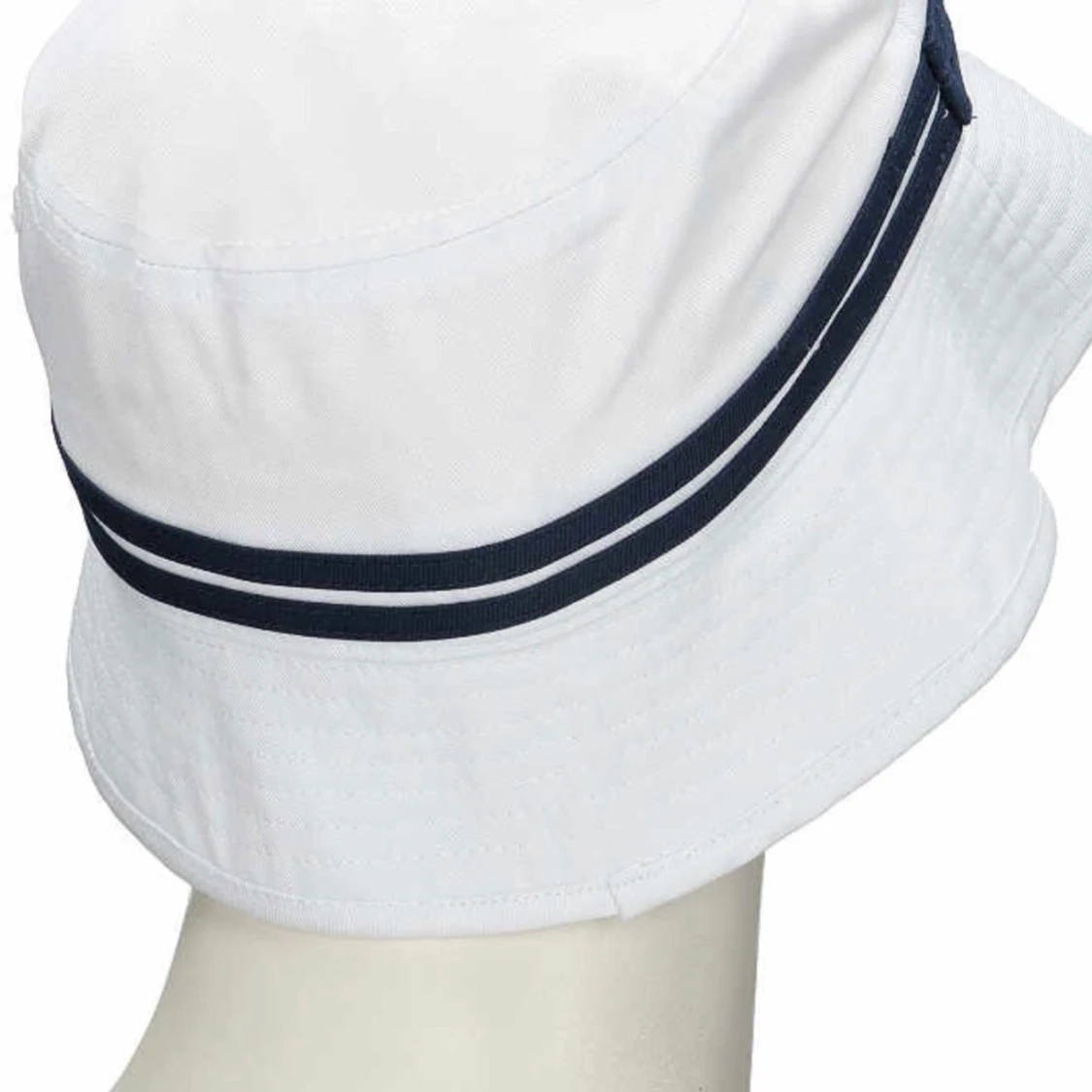 En vit fiskehatt med två blåa streck runt med märket ellesse. Lite använd förra sommaren BUDA:))