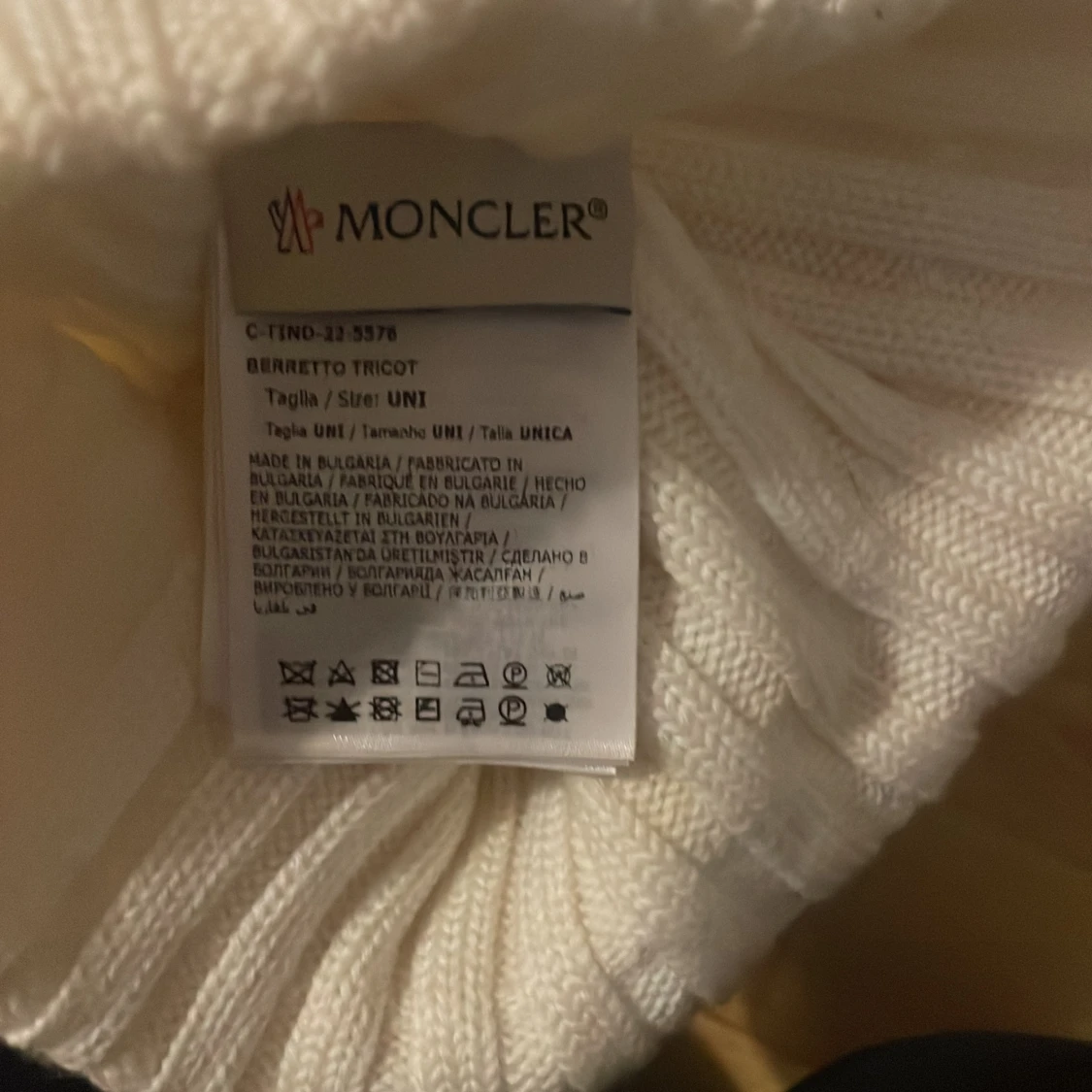 En vit moncler mössa, ÄKTA det går att skanna och kommer i påsen som man fick vid köpet. Ordinarie pris 3600 Pris går att diskutera