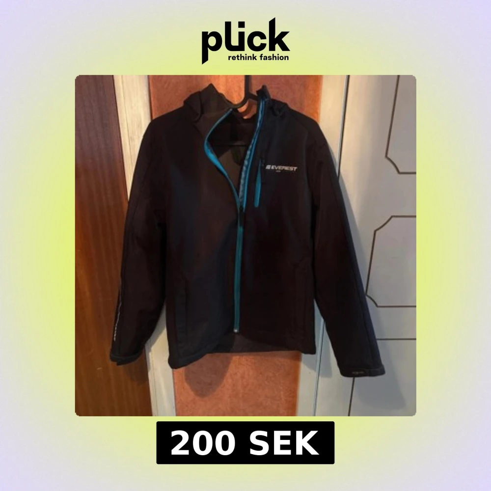 Svart vindjacka från Everest med huva och blå detaljer vid dragkedjan. Jackan har lång ärm och en sportig look, perfekt för dig som gillar att vara aktiv utomhus. Snygg logga på bröstet och praktiska fickor med dragkedja.