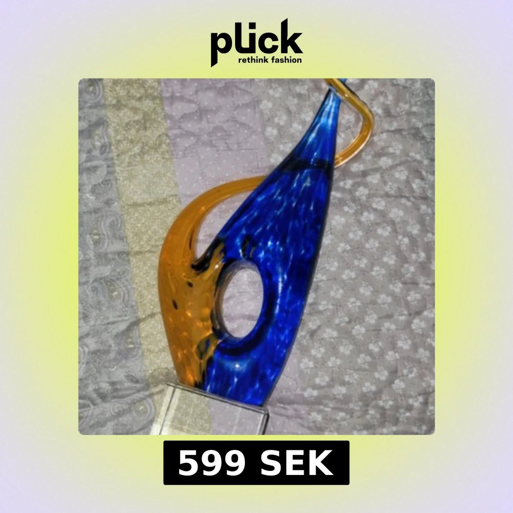 Elegant och färgstark glaskonst/skulptur i blått och orange med abstrakt design. Skapad i massivt glas med en klar fot i kristall-look. Ett riktigt blickfång som passar perfekt som inredningsdetalj i vardagsrum, kontor eller som present till någon som älskar konst och design. Varje exemplar är unikt. Skick: Utmärkt, inga sprickor eller skador Värderad till ca 1000 kr. Perfekt för dig som älskar konstglas eller vill ge ditt hem en lyxig och färgstark touch. ✨️PRIS KAN DISKUTERAS!