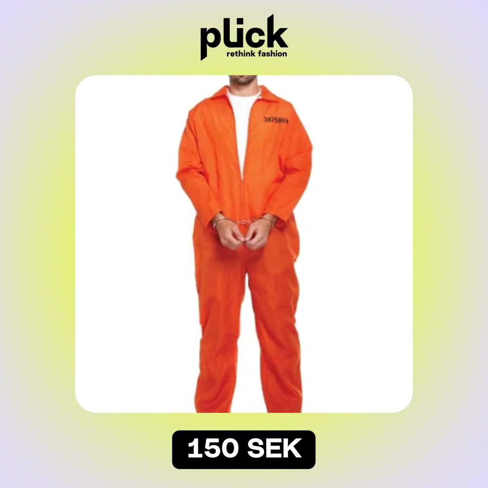 Säljer denna fångedräkt som kan änvändas nu till halloween. Köpt på amazon för ca 270kr. Använd endast 1 gång. Man får även med dessa handbojor. ⛓️🚨🎃