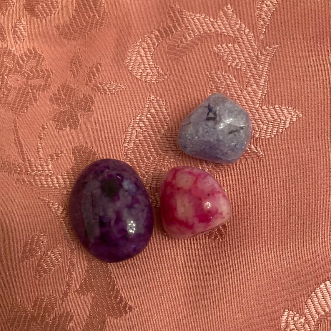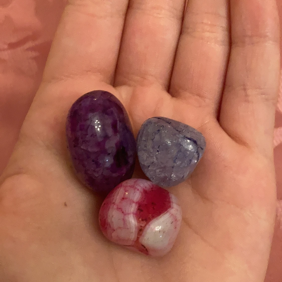 Färgade kvarts. En Sten 5kr, alla tillsammans 15kr. Ej fri frakt om inte köpare kan mötas🌱