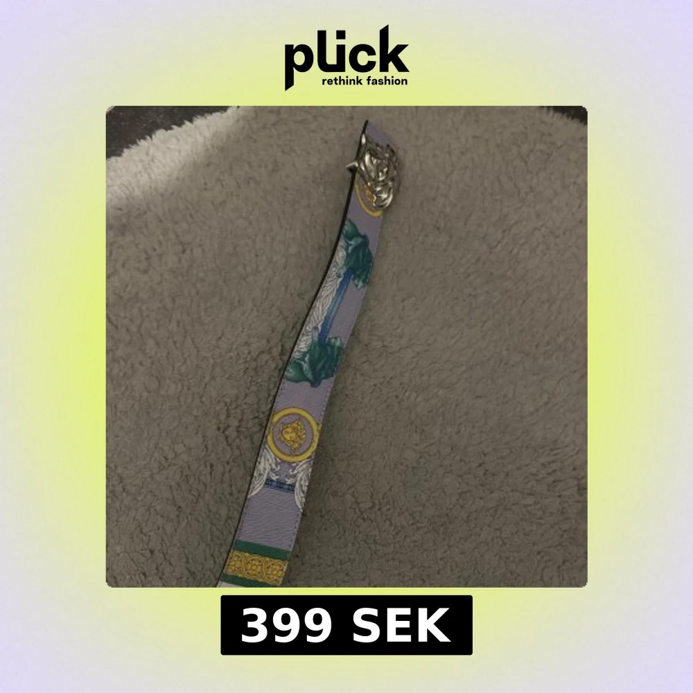 Unikt bälte med färgstarkt mönster i lila, grönt, gult och blått. Bältet har en cool silverfärgad spänne med lejonhuvud och detaljerade ornament. Perfekt för att lyfta vilken outfit som helst med en touch av lyxig vibe.