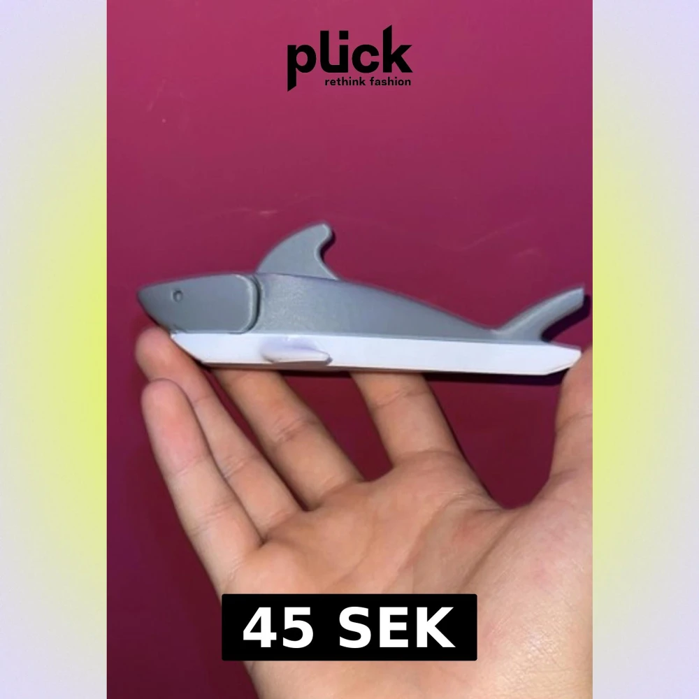 En väldigt unik 3D-Printad Fidget leksak i form av en Haj 🦈 Hajens käke går att öppna och klämma ihop när man trycker ner på finnen. Perfekt för barn som behöver något för att koncentrera sig i skolan eller hemma. Passar väldigt bra som en gåva till barn som gillar havsdjur och speciellt Hajar!