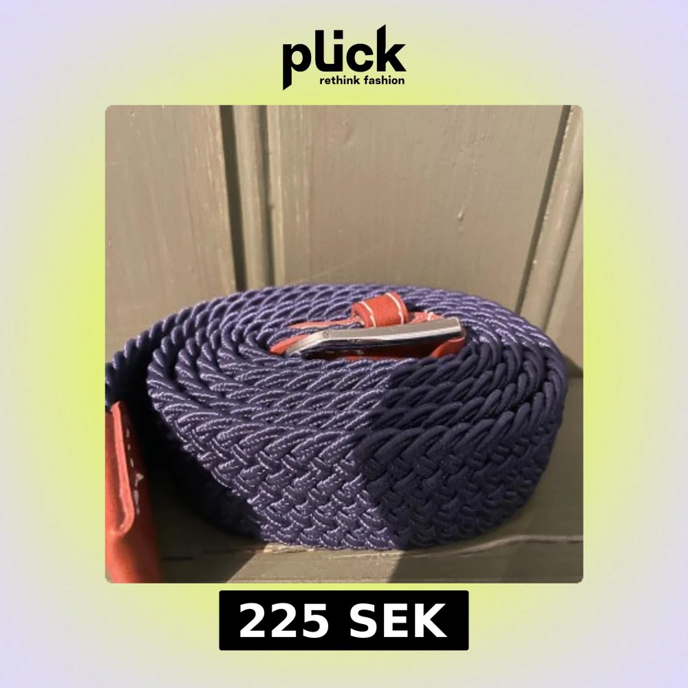 Säljer ett mörkblått bälte som knappt har använts något. 100 cm. Kan posta inom 2 dagar.