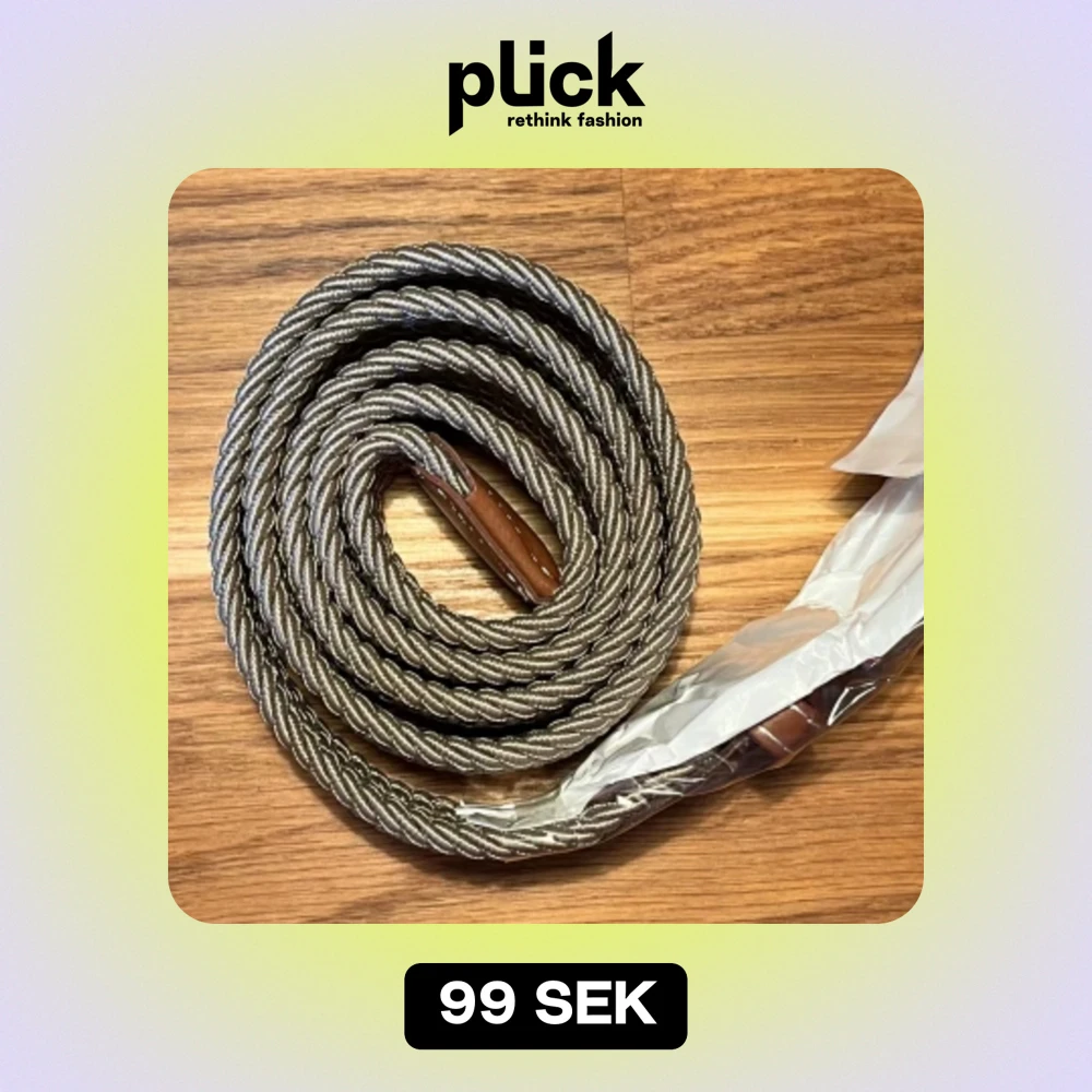 Säljer det här nya och oanvända flätade bältet. Hela bältet bortsett från metallbiten är ca 103 cm långt, men kan stretchas ut till en större storlek. Pris: 69 kr.