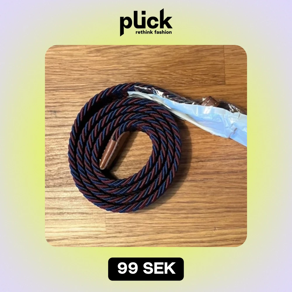 Säljer det här nya och oanvända flätade bältet. Hela bältet bortsett från metallbiten är ca 98 cm långt, men kan stretchas ut till en större storlek. Pris: 59 kr