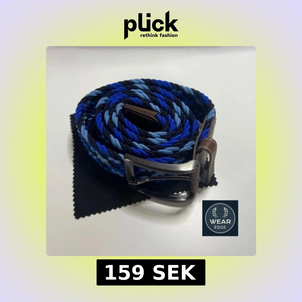 Snyggt flätat bälte i blå och svarta nyanser från Wear Edge. Bältet har en stilren silverfärgad spänne och detaljer i brunt skinn. Perfekt för att ge en färgklick till din outfit. Riktigt snyggt och Grischigt om de är de man söker😀