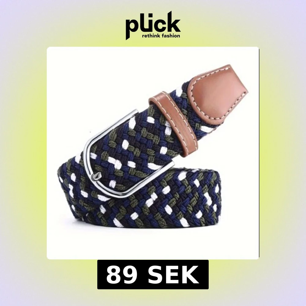 Säljer ett snyggt flätat bälte med blå, grön och vit färg samt detaljer i brunt skinn. Bältet har ett silvrigt spänne och passar perfekt till jeans eller chinos. Stilren design med inslag av flera färger för en modern look.